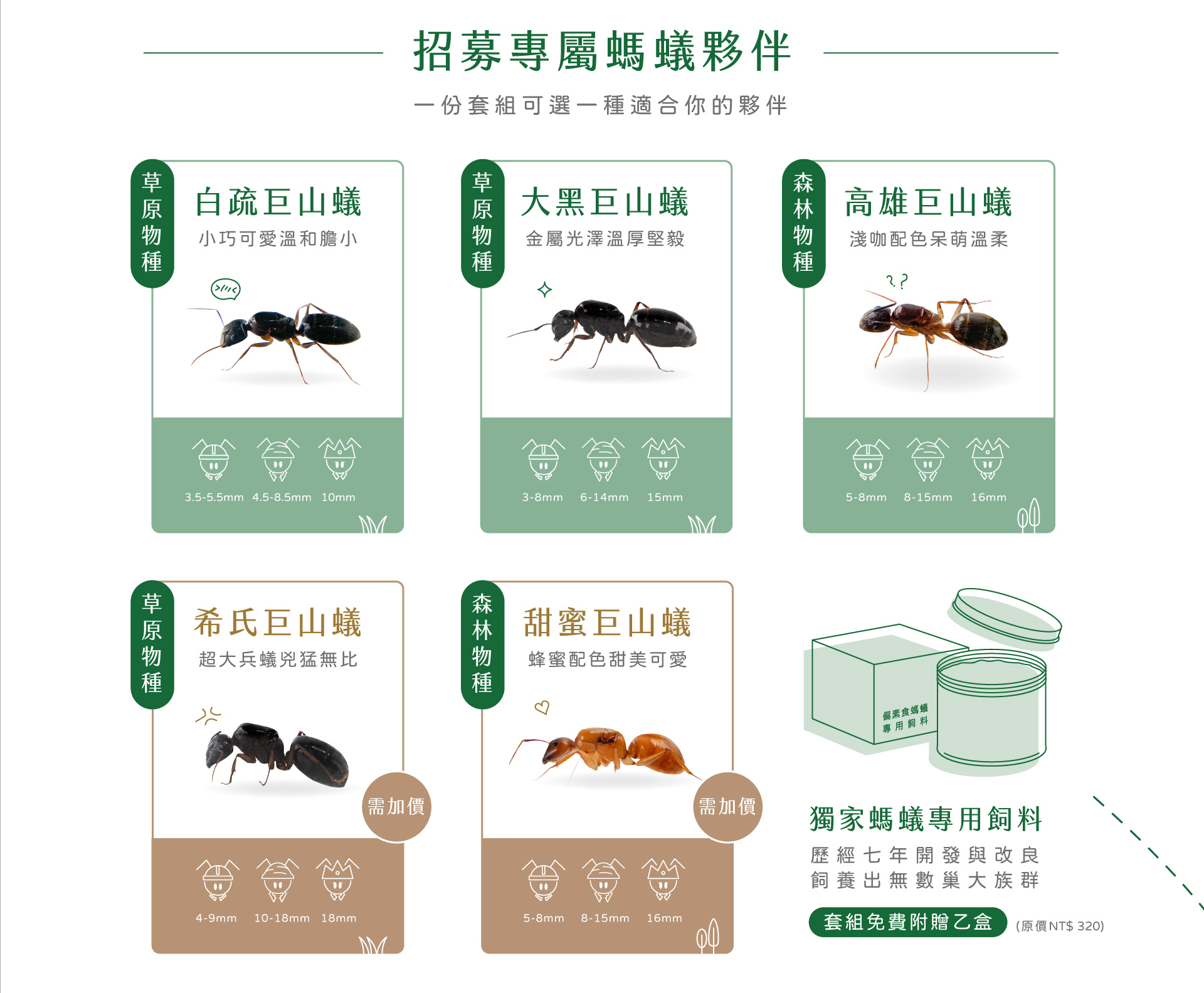 蟻宅Pro系列 荒野巨岩/深林枯木/漫遊埃及 大/中/小 擇一巨山蟻新生族群 大黑/高雄/白疏/希氏/甜蜜 擇一