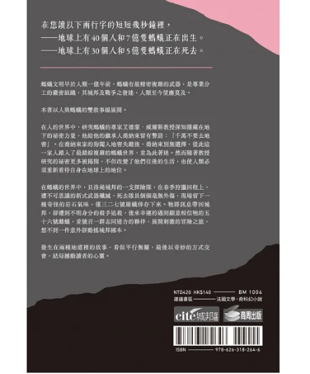 1.法國生態科幻預言小說經典「螞蟻三部曲」三十週年,全球翻譯國家超過30種語言,全系列三部曲暢銷六百八十萬冊。